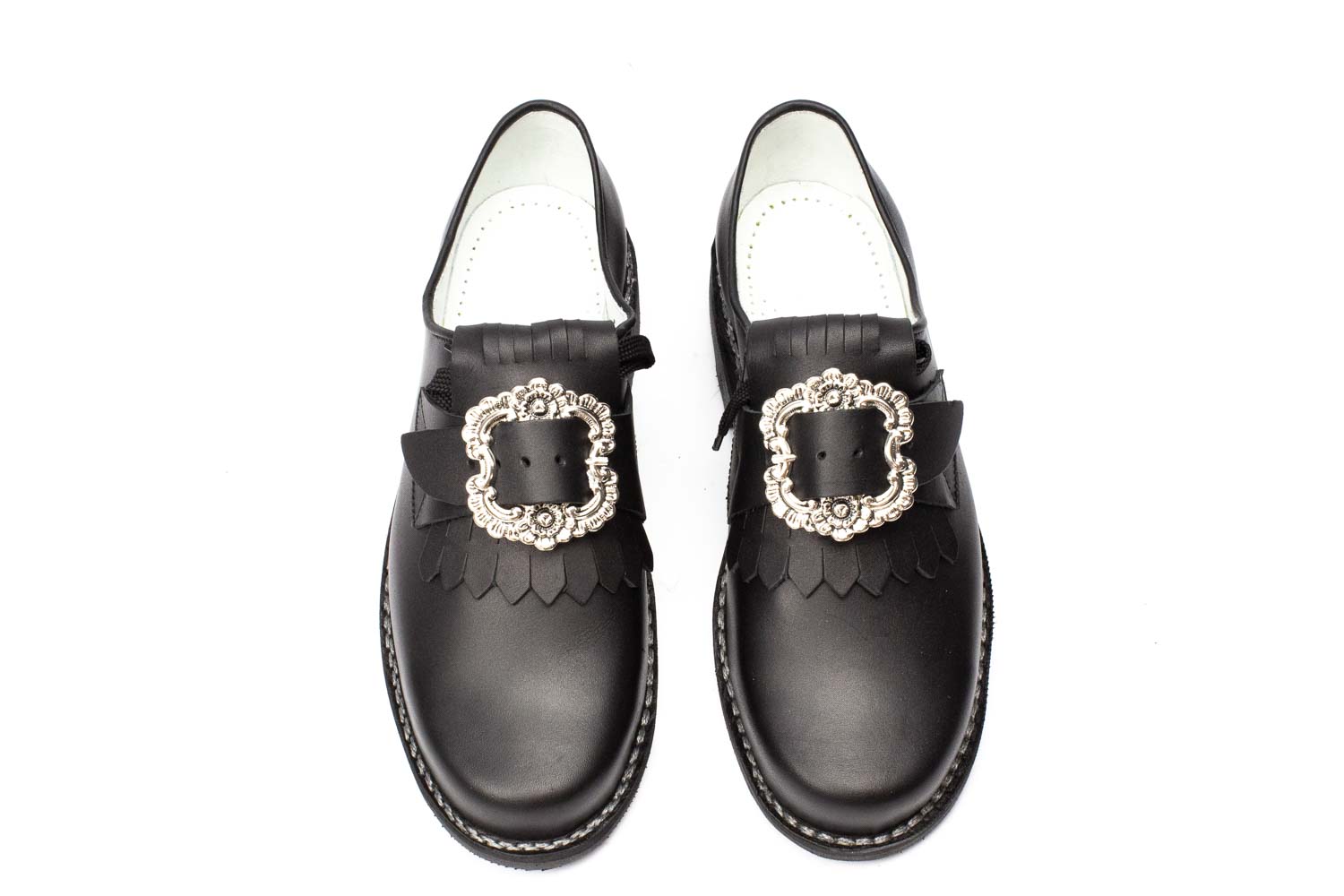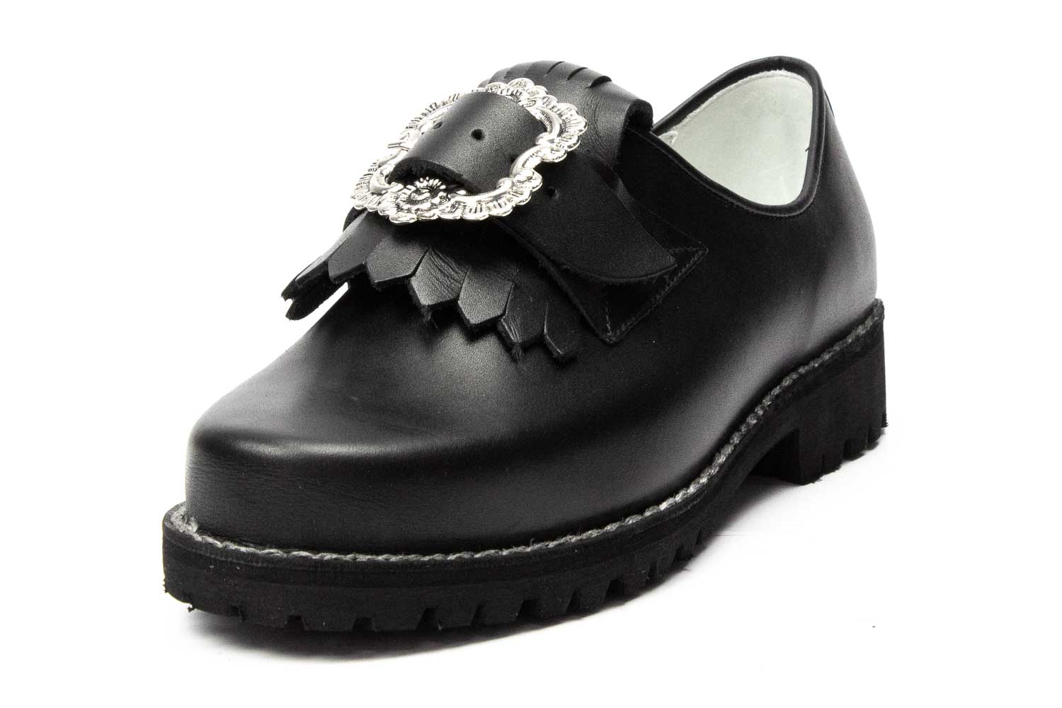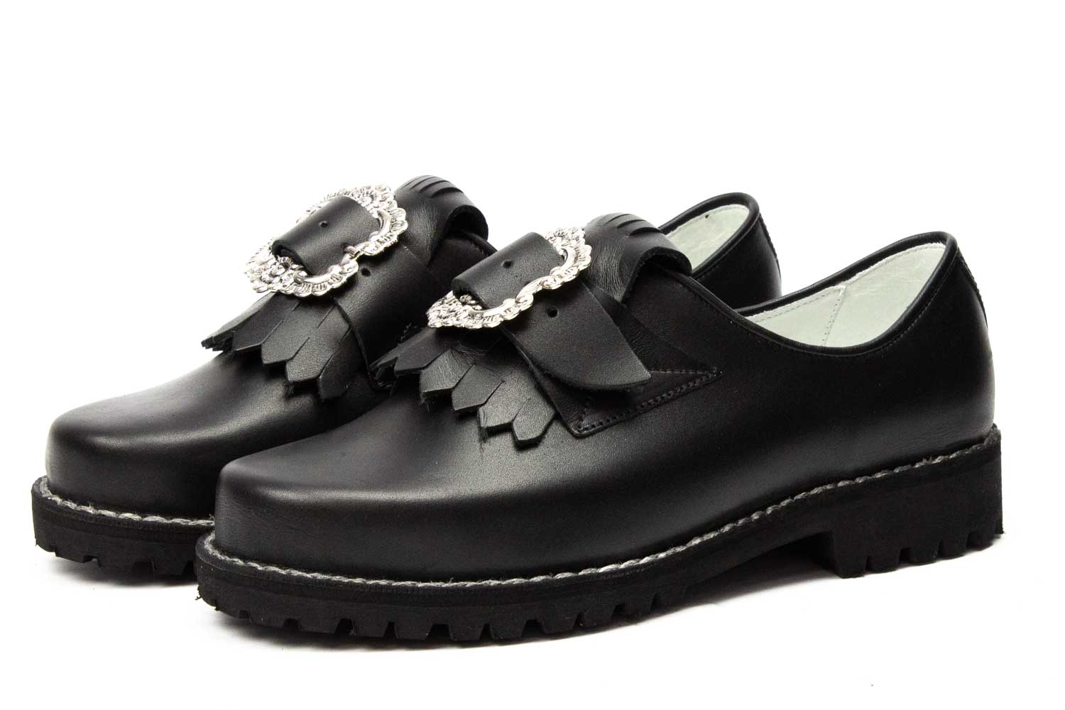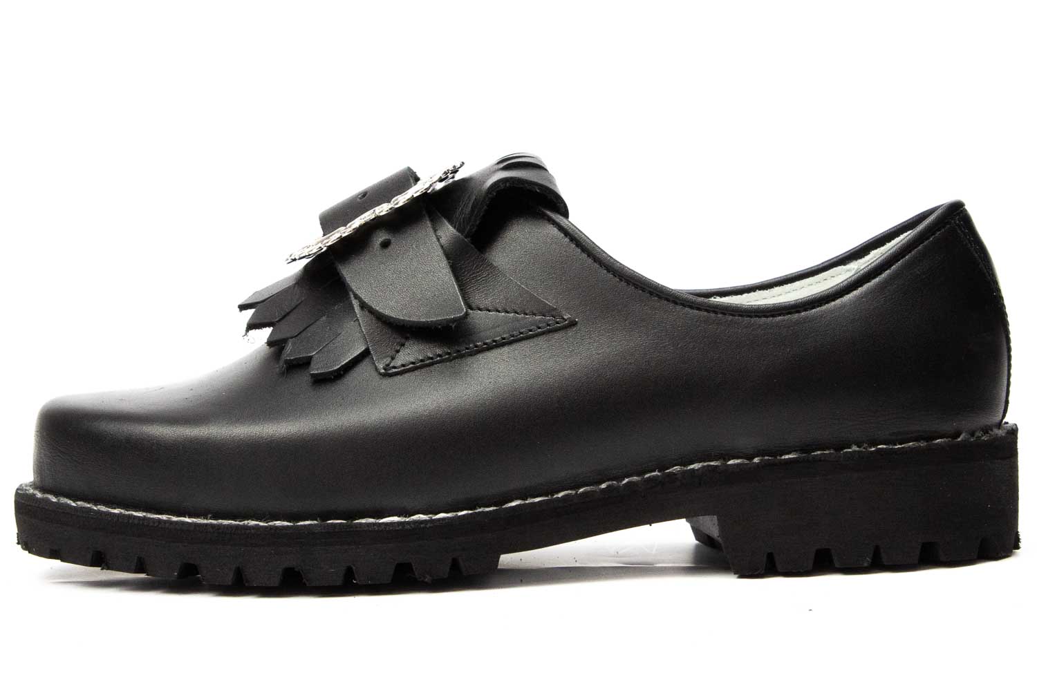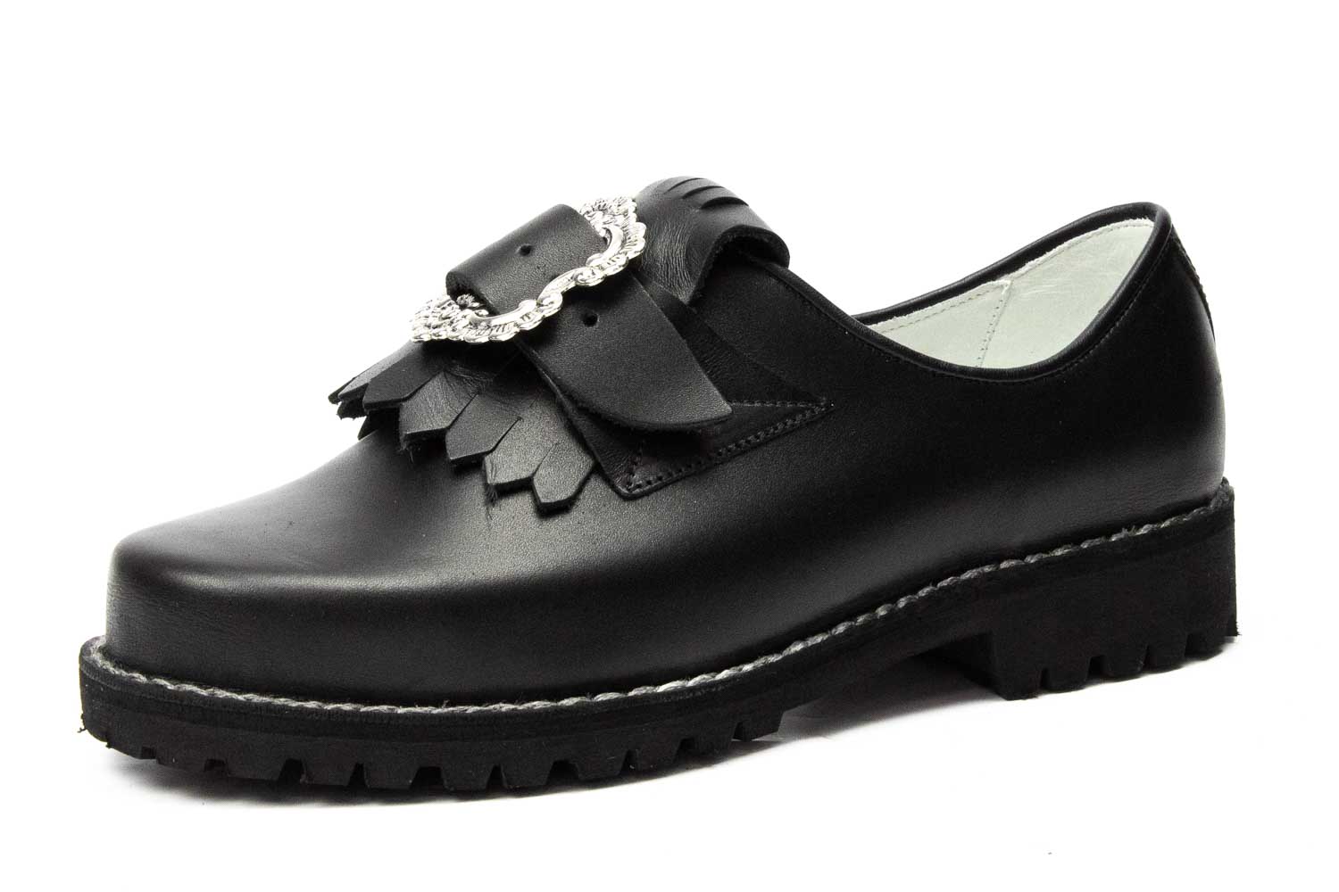 506-H-W-Profil - Herren Trachtenschuhe mit ovaler Schnalle, weiße Naht, Profilsohle