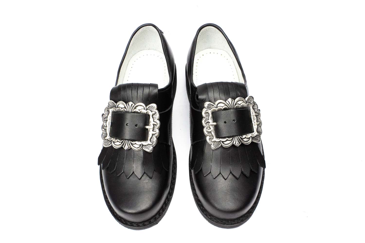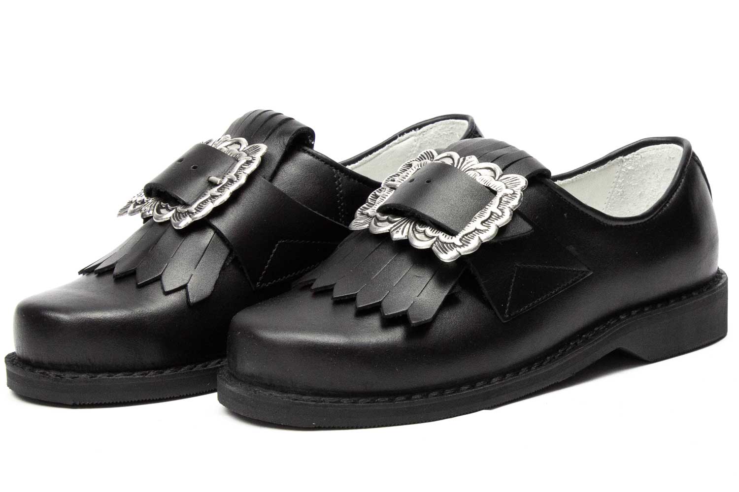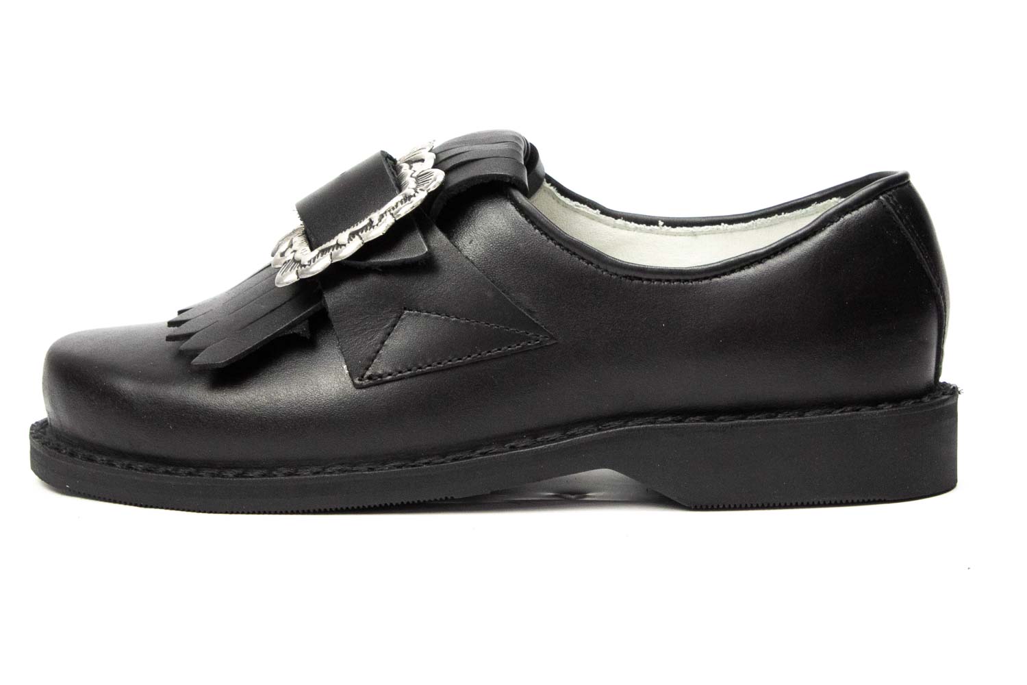 507-D-S - Damen Trachtenschuhe mit eckiger Schnalle, schwarze Naht