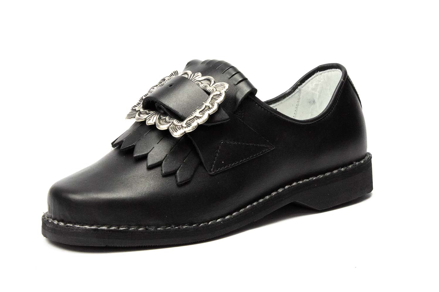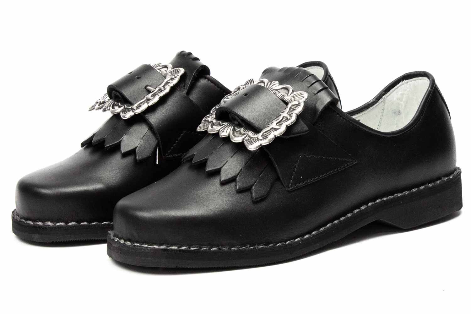 507-D-W - Damen Trachtenschuhe mit eckiger Schnalle, weiße Naht